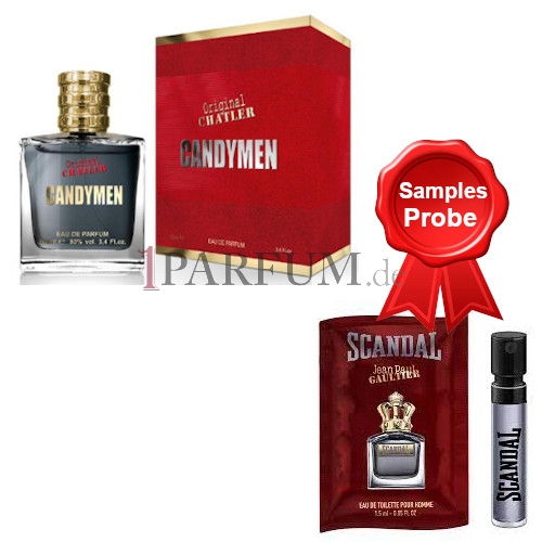 Startseite » Herrendüfte » Chatler » Chatler Original Candymen - Eau de Parfum 100 ml, Probe Gaultier Scandal Homme